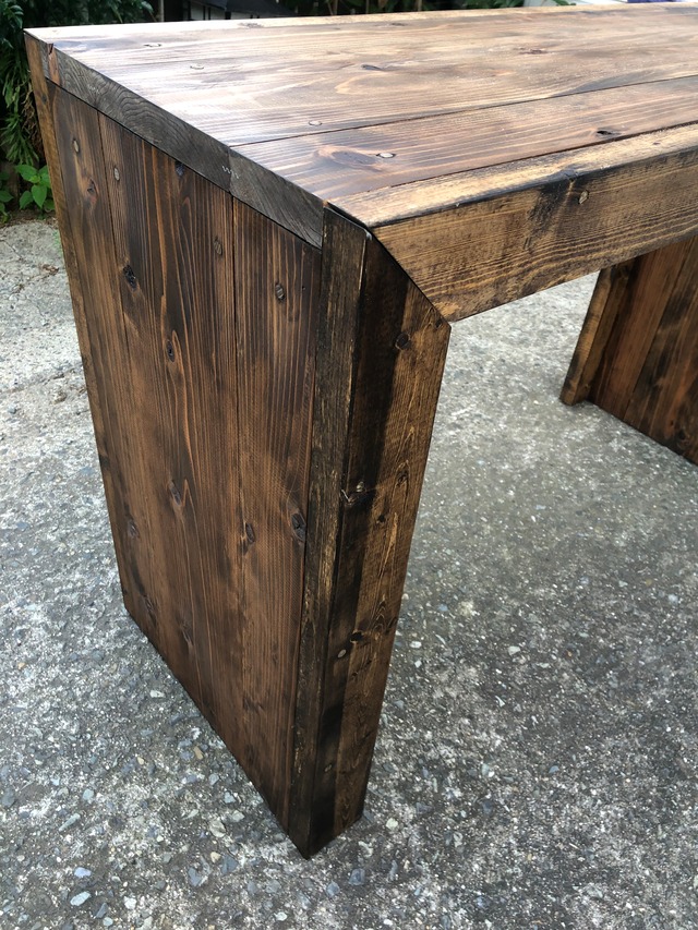 捨てられてしまうはずの木を一部利用したレトロ感のあるテーブルです。 写真で掲載している商品は 幅W120cm/奥行D47.7cm/高さH70cmです。 ノックダウン式で簡単に組み立てが可能です。 六角棒レンチ(8mm)を付属いたしますのでお客様に工具を用意していただく必要はありません。*不要の方はお申しつけください。 オーダー可能領域 幅:~180cmまで 高さ:~100cmまで 奥行:27.7cm/47.7cm/67.7cmのいずれか 商品価格は表示している商品の寸法になりますので オーダー内容によっては商品と輸送費の変動がございます。 そのほかご相談はお気軽に連絡ください。